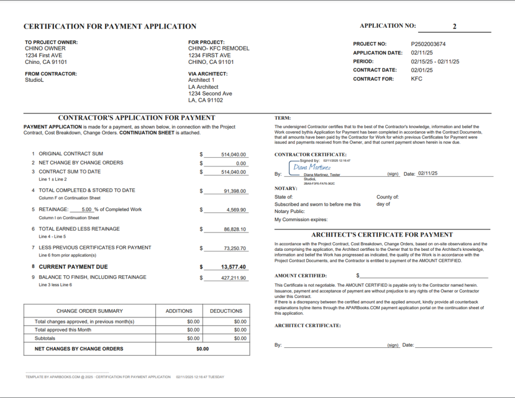“What used to take our team days now takes minutes,” Sarah enthuses. “APARBooks automatically calculates retainage across all line items, ensuring accuracy and consistency. Even better, it generates AIA payment applications and invoices automatically.”